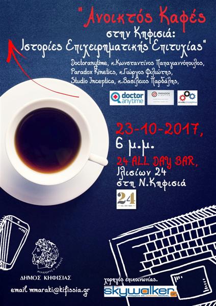 Ιστορίες Επιχειρηματικής Επιτυχίας που καταδεικνύουν την πορεία που ακολούθησαν ομάδες νέων προκειμένου η ιδέα τους να γίνει πράξη θα παρουσιάζονται τους επόμενους μήνες σε κεντρικά σημεία συνάντησης της νεολαίας, σε καφέ του Δήμου Κηφισιάς.