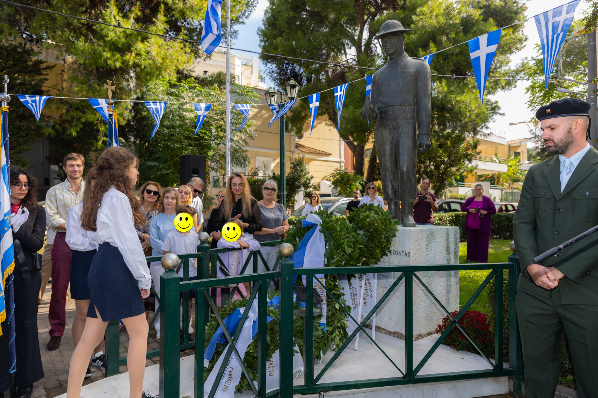 Κατάθεση στεφάνων πραγματοποιήθηκε στο Μνημείο των Πεσόντων στην πλατεία Κέννεντυ, από μαθητές και εκπροσώπους φορέων και συλλόγων.