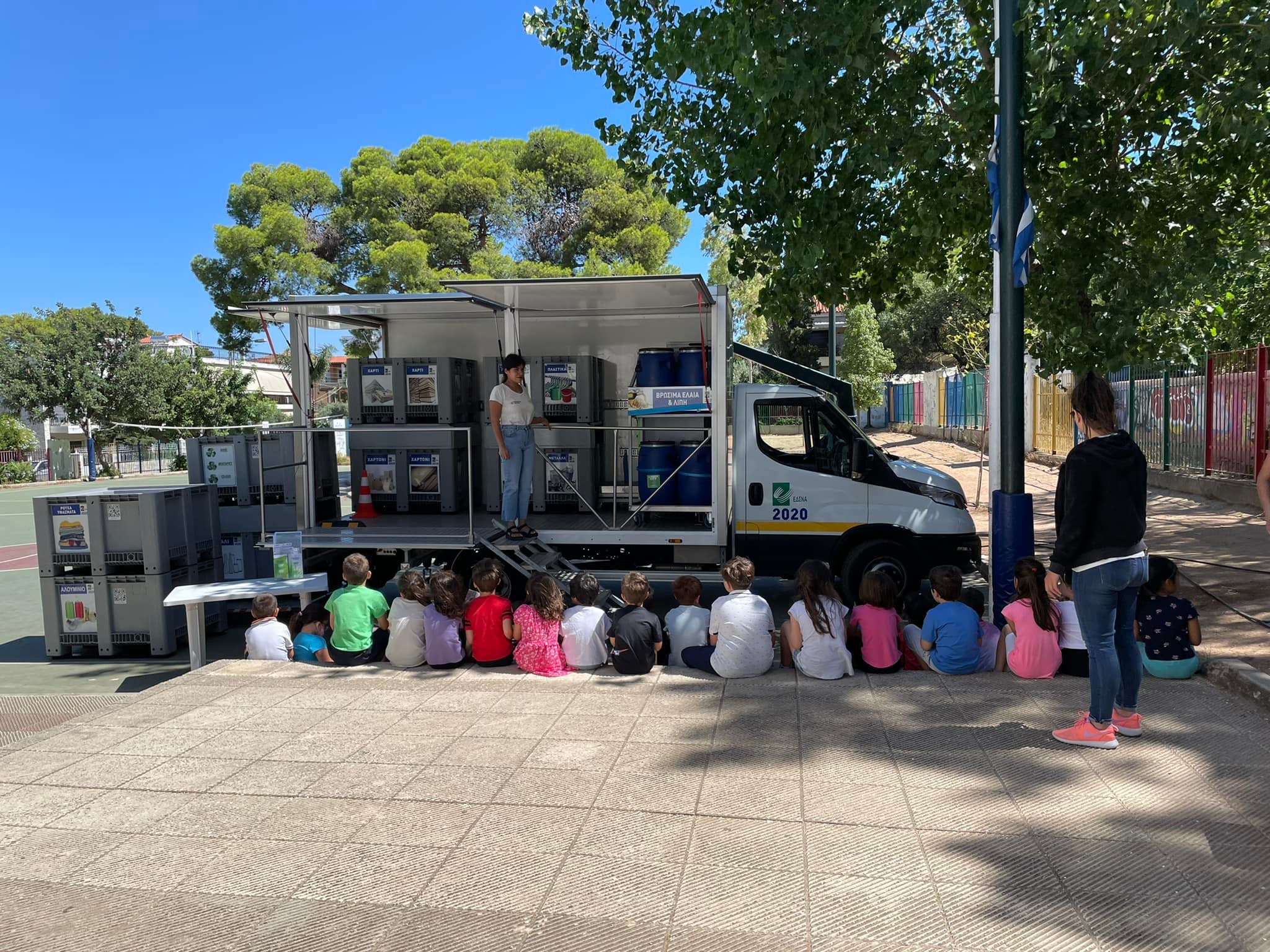 Παιδιά που συμμετέχουν στον Καλοκαιρινό Παιδότοπο του ΝΠΔΔ «Κοινωνική Μέριμνα» του Δήμου Κηφισιάς στο 1ο Δημοτικό Σχολείο Νέας Ερυθραίας είχαν την ευκαιρία στο πλαίσιο των δράσεων που πραγματοποιούνται να  ενημερωθούν και να εκπαιδευτούν, για την ανακύκλωση συσκευασιών μέσω του Προγράμματος GREEN CITY  της Περιφέρειας Αττικής.