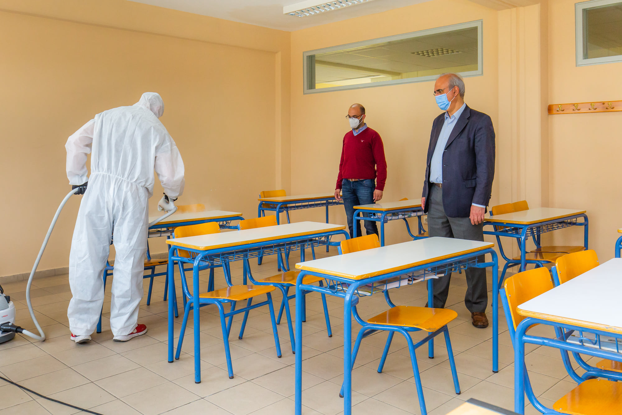 Την Παρασκευή 9/4 έγιναν απολυμάνσεις από ειδικό συνεργείο στους κοινόχρηστους χώρους αλλά και στις αίθουσες Λυκείων του Δήμου μας.
