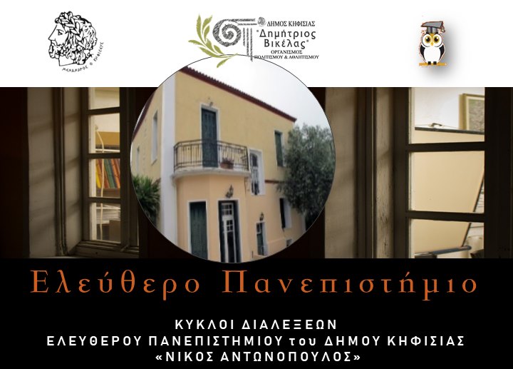 Την ΠΑΡΑΣΚΕΥΗ, 13 Δεκεμβρίου, στο ΕΛΕΥΘΕΡΟ ΠΑΝΕΠΙΣΤΗΜΙΟ του Δήμου Κηφισιάς στις: 7.10΄- 9.00΄μ.μ.,