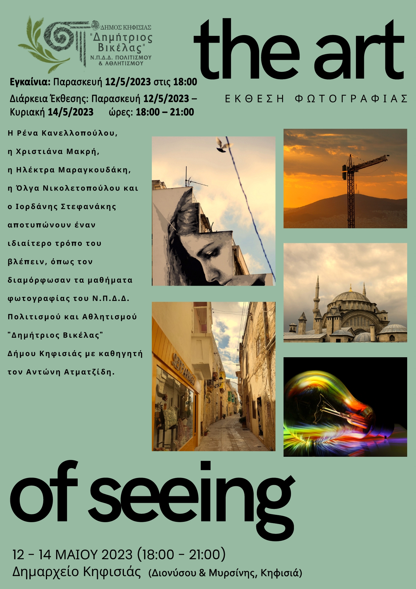 Εγκαίνια Τετάρτη 24 Μαΐου 2023 στις 19:00  Αμφιθέατρο του «Λύρειου» Διδακτηρίου, Όθωνος & Πυθαγόρα 2 Κ. Κηφισιά