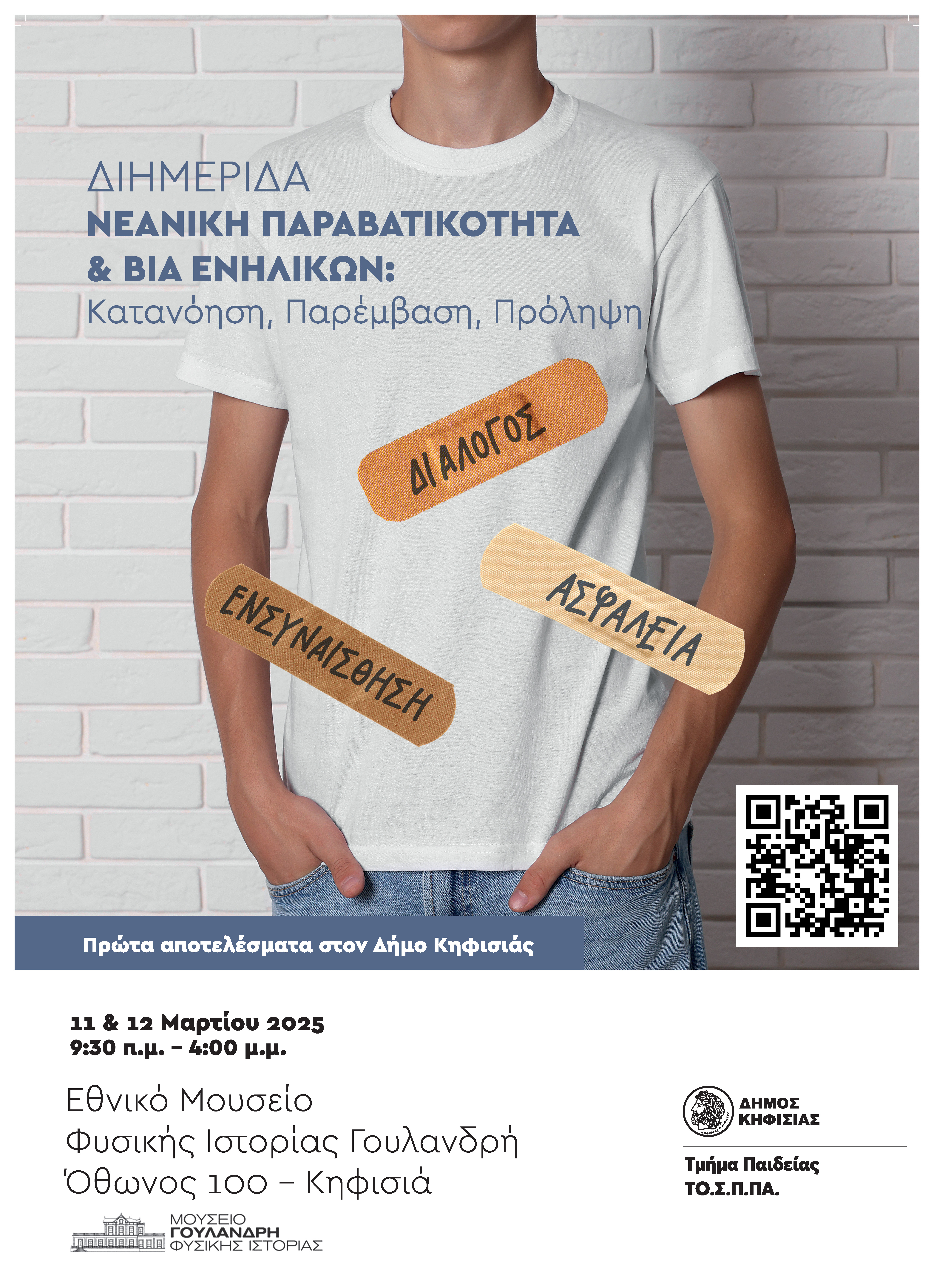 Ο Δήμαρχος Κηφισιάς, Βασίλης Ξυπολυτάς έχει την τιμή να σας προσκαλέσει στη Διημερίδα με θέμα «Νεανική Παραβατικότητα και Βία Ενηλίκων: Κατανόηση, Παρέμβαση, Πρόληψη» που διοργανώνει Δήμος Κηφισιάς.
