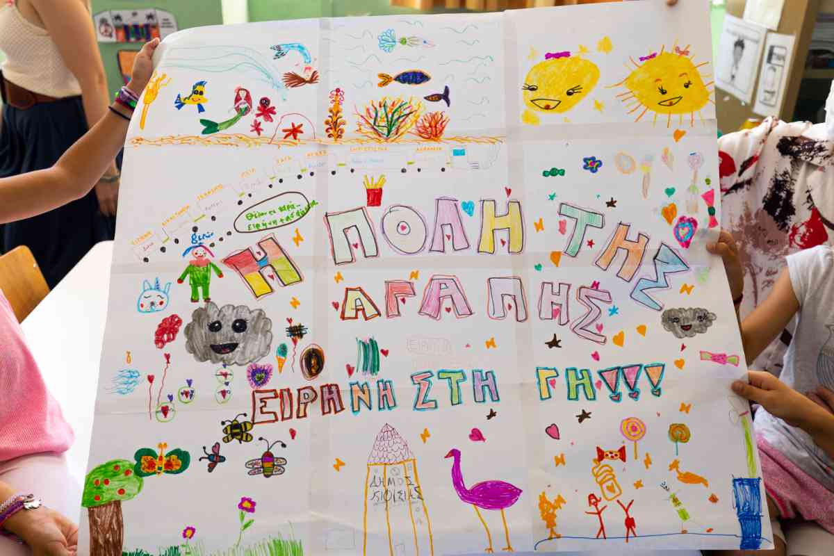 Η φαντασία και η δημιουργικότητα των παιδιών ανεξάντλητη. Με χαρτιά, πλαστελίνες, μαρκαδόρους αλλά και με αγαπημένα παιχνίδια τους (αυτοκινητάκια και ανθρωπάκια μινιατούρες) δημιούργησαν τις πόλεις της αγάπης και της ειρήνης στη Γη. Τα έργα τους ξεπέρασαν κάθε προσδοκία ζωγραφιές, ποιήματα, εικονογραφημένα παραμύθια, κόμιξ, τραγούδια, θεατρικές παραστάσεις, χορευτικά, video-clip ακόμα και ταινία μικρού μήκους με ήρωες από πλαστελίνη, πραγματικά έργα σύγχρονης τέχνης, που αποδεικνύουν ότι σε πολλά θέματα τα παιδιά βλέπουν καλύτερα από τους ενήλικες.