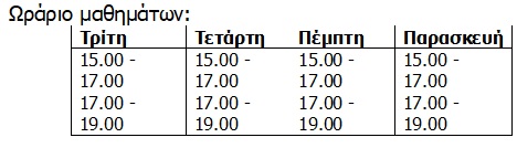Τα μαθήματα διεξάγονται στην οδό Χαριλάου Τρικούπη 68 (πάρκο «Α. Στουδίτης») με καθηγήτρια την κα Φρόσω Μαλέα, ζωγράφο-εκπαιδευτικό Τέχνης.
