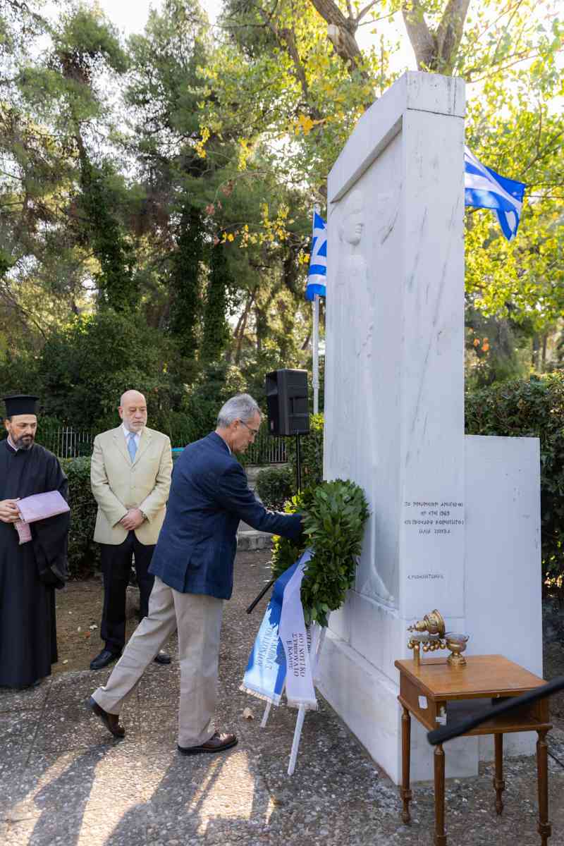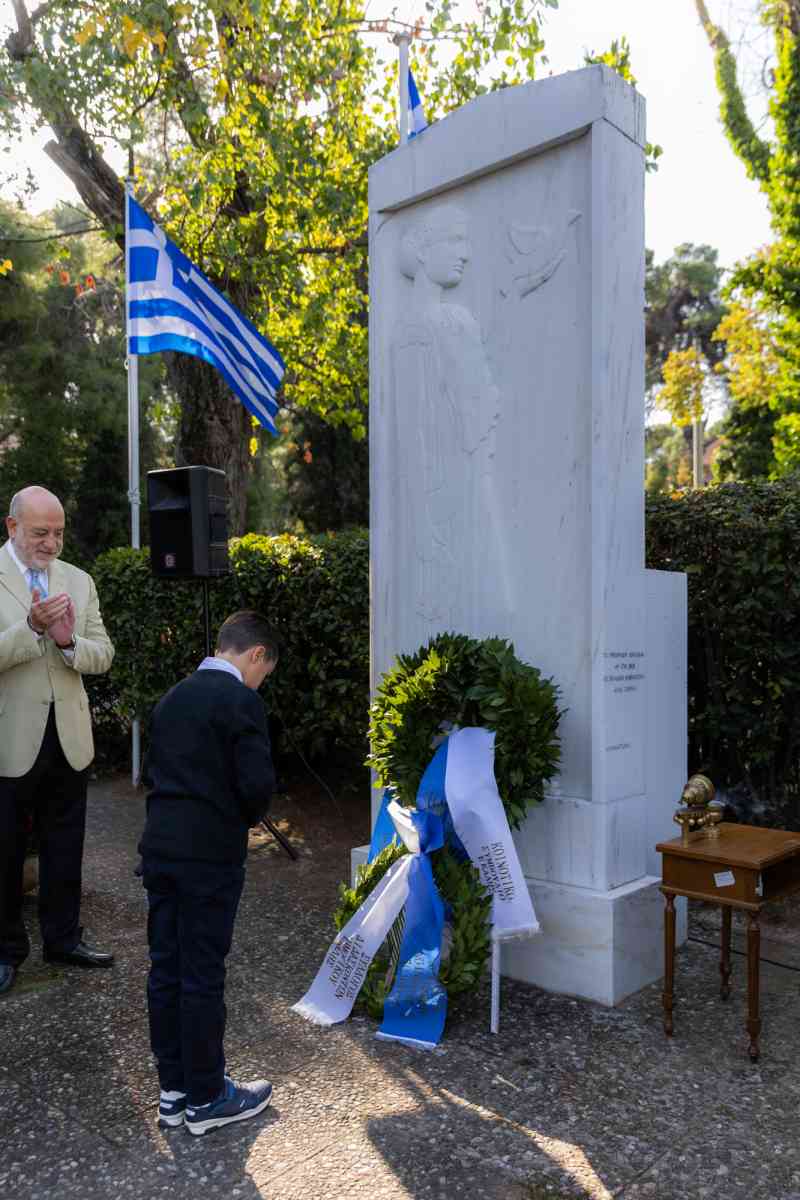 Κατάθεση στεφάνων πραγματοποιήθηκε στο Μνημείο των Πεσόντων στην πλατεία Κέννεντυ, από μαθητές, μαθήτριες και εκπροσώπους συλλόγων.
