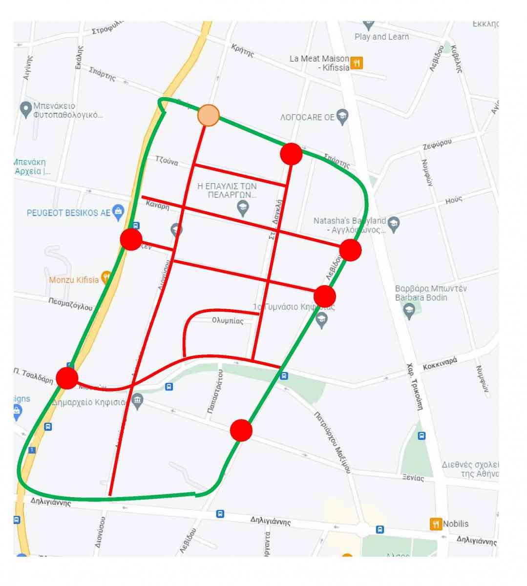 H εκτροπή της κυκλοφορίας λόγω των ρυθμίσεων αυτών, θα γίνεται μέσω των οδών: Λεωφ. Κηφισίας, Σπάρτης, Χαρ. Τρικούπη και Δηληγιάννη.