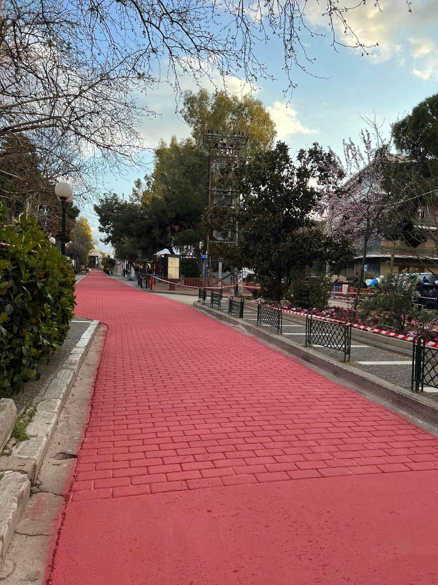 Είναι η τρίτη παρέμβαση που πραγματοποιείται σε διαφορετικά τμήματα του κέντρου για την αποκατάσταση του οδοστρώματος, με την πρωτοποριακή μέθοδο της έγχρωμης σταμπωτής ασφάλτου.