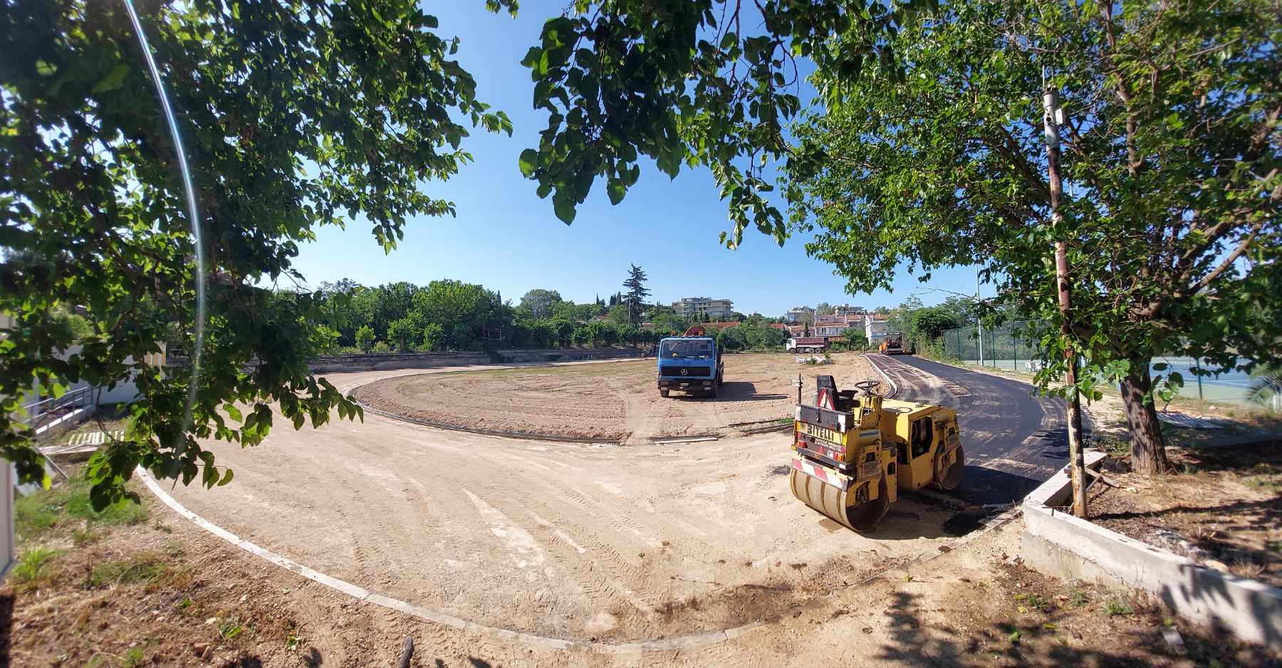 Σήμερα ολοκληρώνεται η ασφαλτόστρωση, Ήδη έχουν γίνει εργασίες κατασκευής συστήματος απορροής υδάτων και υποδομής πυλώνων φωτισμού καθώς και η δημιουργία κρασπέδων περιμετρικά του στίβου.