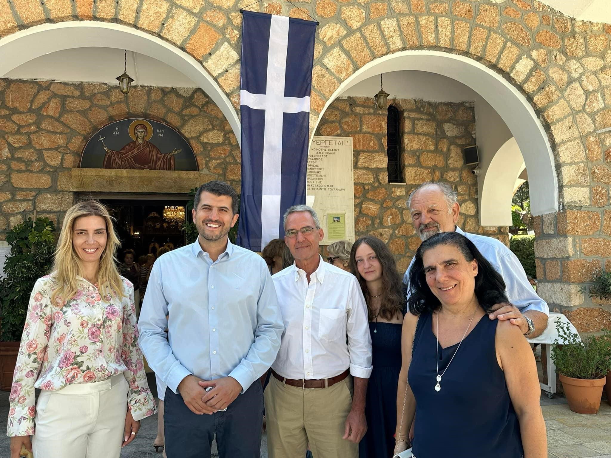 Σημερινή φωτογραφία από τον Ιερό Ναό Κοιμήσεως Θεοτόκου & Αγ. Μαρίνας Εκάλης (από αριστερά): Η Αντιδήμαρχος Διοικητικών Υπηρεσιών και Πολεοδομίας κα Ελένη Βάρσου, ο Δήμαρχος Κηφισιάς και Πρόεδρος του ΣΠΑΠ, κ. Βασίλης Ξυπολυτάς, ο Αντιδήμαρχος Οικονομικών και Δ. Ε. Εκάλης κ. Πέτρος Σφηκάκης με την κόρη του, ο Ειδικός Σύμβουλος του Προέδρου του ΣΠΑΠ, κ. Δημήτρης Λιανός και η Εντεταλμένη Σύμβουλος Α' ΚΑΠΗ Κηφισιάς, κα Αγγελική Βαλασοπούλου.