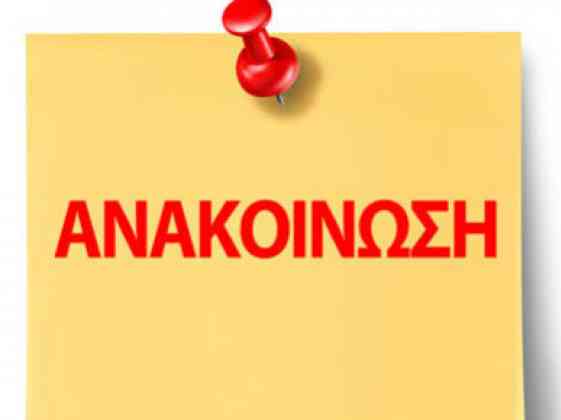 Aνακοινώνεται η ακύρωση της προγραμματισμένης για την Κυριακή 23 Ιανουαρίου 2022 στις 10 π.μ.