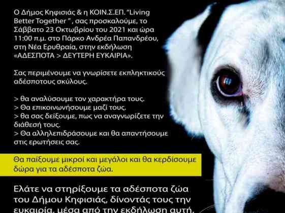 Ο Δήμος Κηφισιάς και η “Living Better Together KΟΙΝΣΕΠ”, σας προσκαλούμε το Σάββατο 23 Οκτωβρίου του 2021 και ώρα 11:00 π.μ.