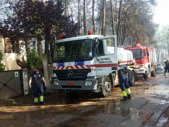 Σε ύφεση βρίσκεται η μεγάλη φωτιά που ξέσπασε το πρωί σε Σταμάτα, Διόνυσο και Ροδόπολη στον Δήμο Διονύσου.