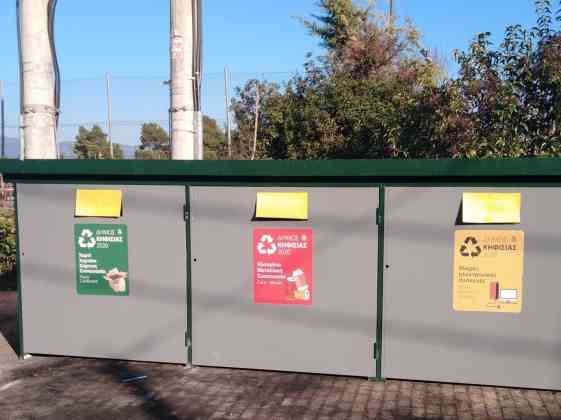 Τοποθετήθηκε σήμερα η πρώτη συστοιχία κάδων χωριστής διαλογής ηλεκτρικών συσκευών, μεταλλικών-αλουμινίων και χάρτινων συσκευασιών έξω από το Αναξαγ