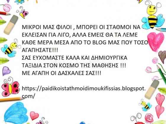Οι Παιδικοί και Βρεφονηπιακοί Σταθμοί του Δήμου Κηφισιάς συνεχίζουν τη δραστηριότητα τους μέσω του blog: «Βρεφικοί, Βρεφονηπιακοί, Παιδικοί Σ