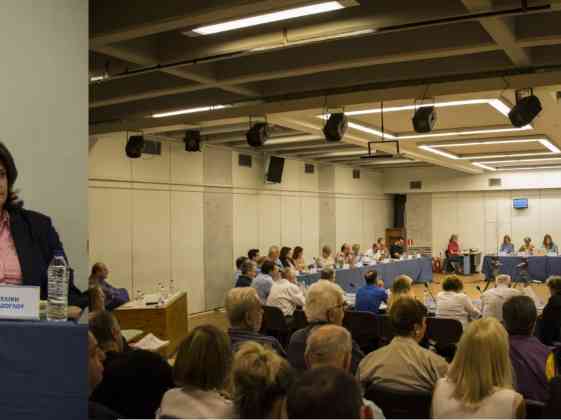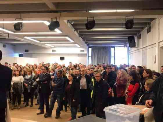 Στην κατάμεστη από εργαζόμενους, αίθουσα του Δημαρχείου Κηφισιάς (αίθουσα «Β.