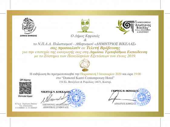 Τους πρωτοετείς φοιτητές και φοιτήτριες στην Τριτοβάθμια Εκπαίδευση βραβεύει ο Δήμος Κηφισιάς την Παρασκευή 3 Ιανουαρίου 2020 και ώρα 19.00 στο Dom
