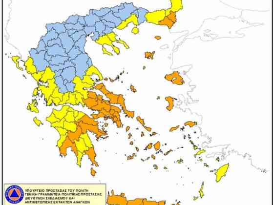 Σύμφωνα με το Χάρτη Πρόβλεψης Κινδύνου Πυρκαγιάς που εκδίδει η Γενική Γραμματεία Πολιτικής Προστασίας του Υπουργείου Προστασίας του Πολίτη (www.civ