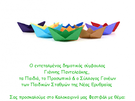 Το 15ο Φεστιβάλ των Παιδικών Σταθμών της Δημοτικής Ενότητας Νέας Ερυθραίας θα πραγματοποιηθεί την Παρασκευή 5 Ιουλίου 2019, στις 19.00, στον αύλειο