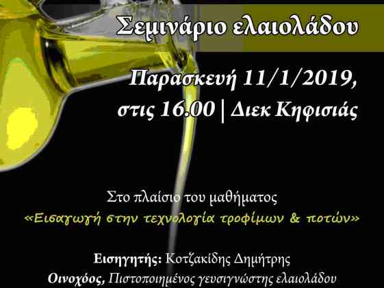 ο Δ.ΙΕΚ Κηφισιάς θα φιλοξενήσει Σεμινάριο για το Ελαιόλαδο με προσκεκλημένο ομιλητή τον κύριο Κοτζακίδη, οινοχόο και πιστοποιημένο γευσιγνώστη ελαι