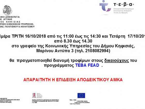 Στο πλαίσιο του Επιχειρησιακού Προγράμματος «Επισιτιστικής και Βασικής Υλικής Συνδρομής για το Ταμείο Ευρωπαϊκής Βοήθειας για τους Απόρους (TEBA/FE