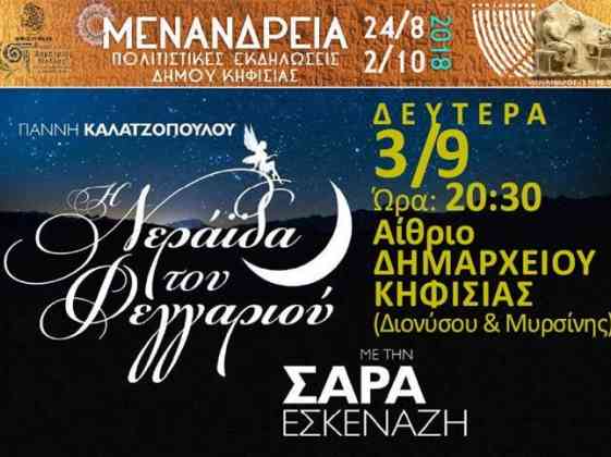 Η Σάρα Εσκενάζη, μεταμορφώνεται σε «Νεράιδα του Φεγγαριού», απόψε το βράδυ στο Αίθριο του Δημαρχείου Κηφισιάς, στις 20.30, στο πλαίσιο των πολιτιστ