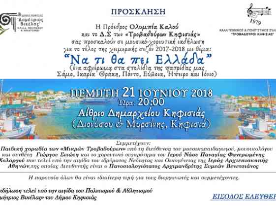 Μουσικοχορευτική εκδήλωση με τίτλο "Να τι θα πει Ελλάδα"