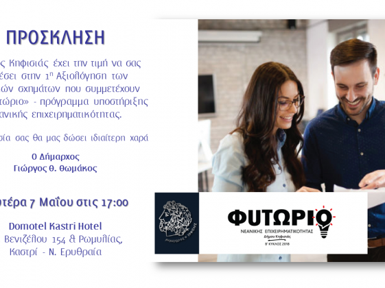 Το Φυτώριο Υποστήριξης Νεανικής Επιχειρηματικότητας του Δήμου Κηφισιάς συνεχίζει τις δράσεις του, υποστηρίζοντας τη νέα επιχειρηματικότητα και την