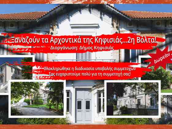 Η δράση «Ξαναζούν τα Αρχοντικά» του Δήμου Κηφισιάς που θα πραγματοποιηθεί την Κυριακή 20 Μαΐου 2018 είναι ΔΩΡΕΑΝ και δεν έχει καμία σχέση με βόλτα