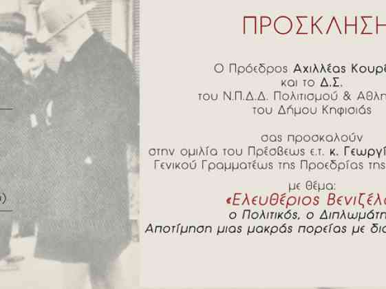 «Ελευθέριος Βενιζέλος, ο Πολιτικός, ο Διπλωμάτης. Αποτίμηση μιας μακράς πορείας με διαχρονική αξία».