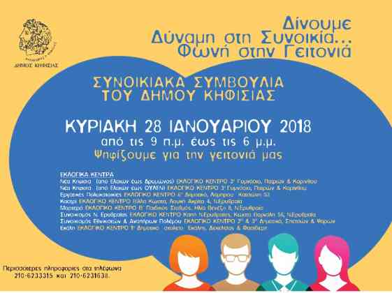 Τοπικές εκλογές για τα Συνοικιακά Συμβούλια θα διεξαχθούν την Κυριακή 28 Ιανουαρίου 2018 και ώρες 9.00- 18.00 στις συνοικίες: