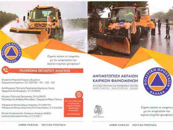 Η Πολιτική Προστασία του Δήμου Κηφισιάς οργανώνει την Παρασκευή 2 Φεβρουαρίου 2018 και ώρα 18.30 στην αίθουσα «Βασ.