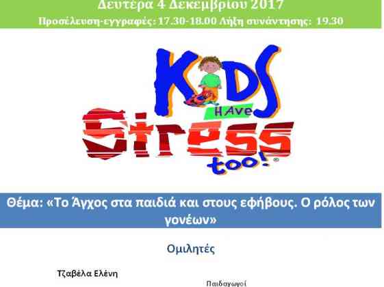 Πέμπτη 30.11.2017 , ώρα 19.00-21.00μμ