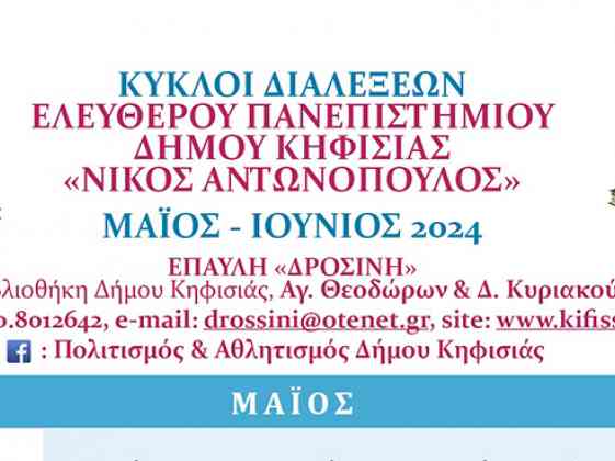 ΚΥΚΛΟΙ ΔΙΑΛΕΞΕΩΝ ΕΛΕΥΘΕΡΟΥ ΠΑΝΕΠΙΣΤΗΜΙΟΥ ΔΗΜΟΥ ΚΗΦΙΣΙΑΣ «ΝΙΚΟΣ ΑΝΤΩΝΟΠΟΥΛΟΣ»