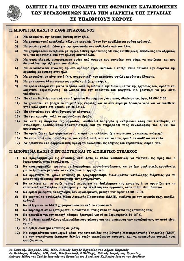 Ο Δήμος Κηφισιάς με την συμβολή του Ειδικού Ιατρού Εργασίας του Δήμου Σαμουήλ Ζορμπά, MD, MSc.προχώρησε στην έκδοση οδηγιών για την πρόληψη της θερμικής καταπόνησης όσων εργάζονται στο ύπαιθρο το καλοκαίρι.