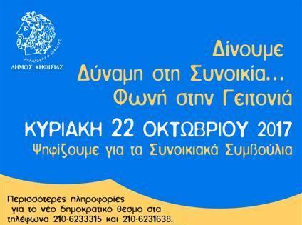Οι εκλογές για τα Συνοικιακά Συμβούλια του Δήμου Κηφισιάς θα πραγματοποιηθούν την Κυριακή 22 Οκτωβρίου 2017