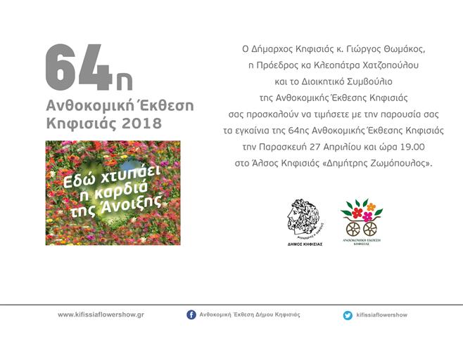 Από τις 26 Απριλίου έως τις 13 Μαϊου 2018, η καρδιά της Άνοιξης χτυπά στο Άλσος Κηφισιάς "Δημήτριος Ζωμόπουλος" για 64η φορά!