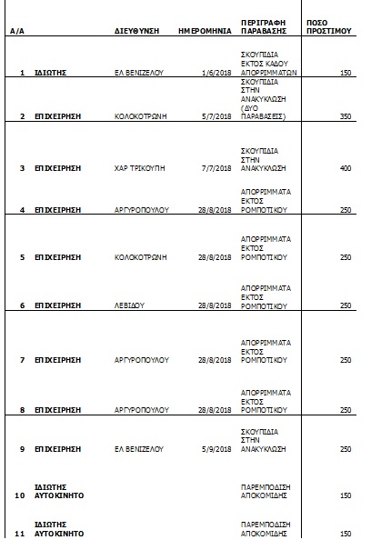 Ακολούθως παρουσιάζεται πίνακας προστίμων των τελευταίων μηνών.