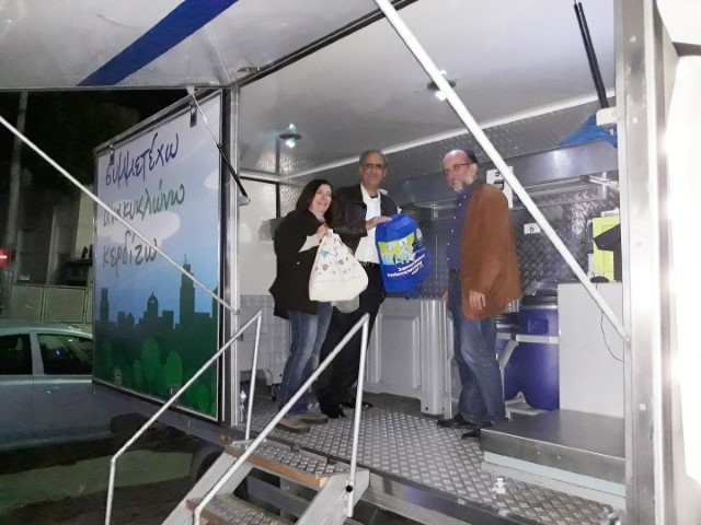 Πολίτες όλων των ηλικιών απέθεσαν ανακυκλώσιμο υλικό στους κάδους χωριστής συλλογής του Κινητού Πράσινου Σημείου, το οποίο επισκέφθηκε για τρεις ημέρες τον Δήμο Κηφισιάς (29-30 Νοεμβρίου και 1 Δεκεμβρίου 2019).