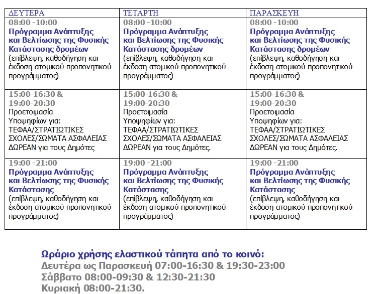 Παρακαλούμε όπως ενημερώνεστε από τους πίνακες ανακοινώσεων για το πρόγραμμα λειτουργίας του χώρου.