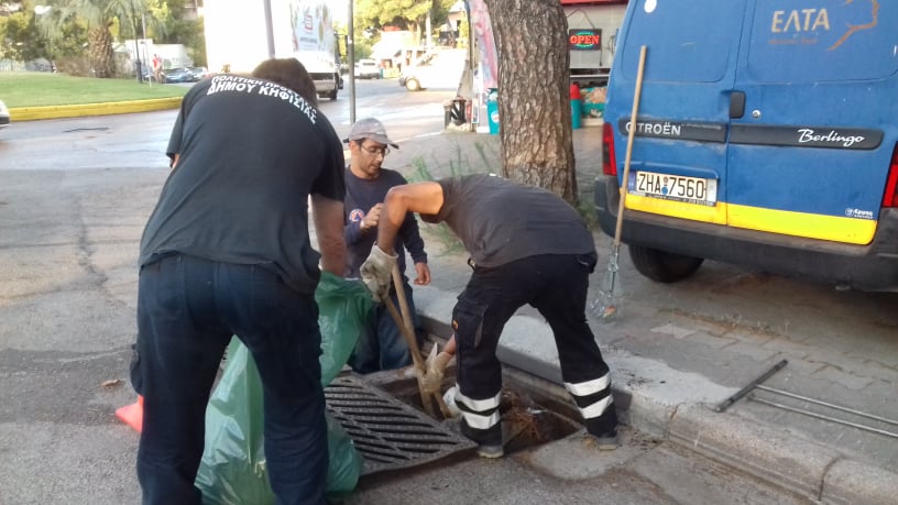 Συνεχίζεται ο προληπτικός καθαρισμός των 7.500 φρεατίων ομβρίων υδάτων που έχει ξεκινήσει τον Ιούλιο και θα ολοκληρωθεί τον Οκτώβριο από την Πολιτική Προστασία του Δήμου Κηφισιάς. Σκοπός η αποφυγή τυχόν πλημμυρικών φαινομένων. Οι καθαρισμοί επαναλαμβάνονται σε σημεία όπου τα ξερά φύλλα που πέφτουν στους δρόμους λόγω φθινοπώρου με τον αέρα και την βροχόπτωση παρασύρονται στα φρεάτια.