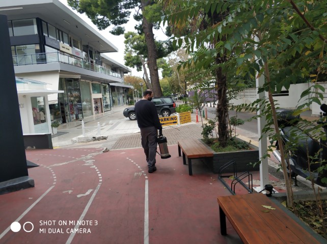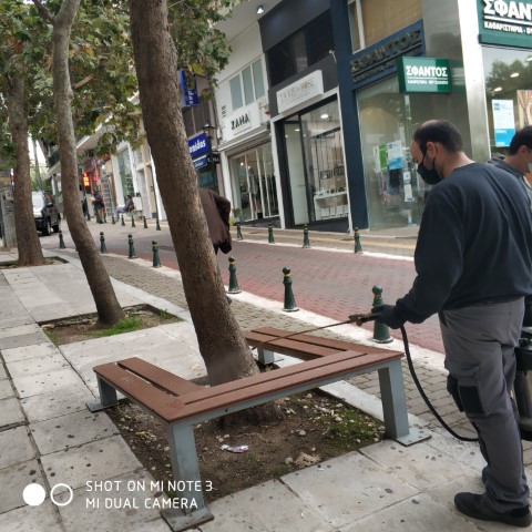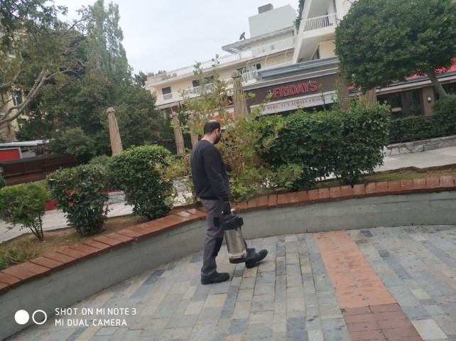 Ειδικό συνεργείο με κατάλληλο εξοπλισμό, απολυμαίνει σε εβδομαδιαία βάση στάσεις λεωφορείων, πλατείες και σημεία σε Κηφισιά, Νέα Ερυθραία και Νέα Κηφισιά όπου συγκεντρώνονται πολίτες.