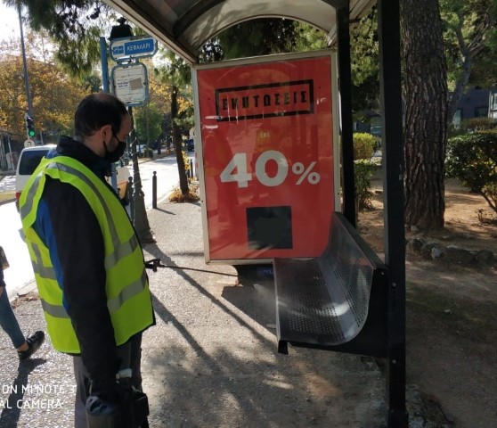 Ειδικό συνεργείο με κατάλληλο εξοπλισμό, απολυμαίνει σε εβδομαδιαία βάση στάσεις λεωφορείων, πλατείες και σημεία σε Κηφισιά, Νέα Ερυθραία και Νέα Κηφισιά όπου συγκεντρώνονται πολίτες.