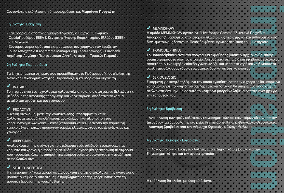 Εκδήλωση για την παρουσίαση και αξιολόγηση νέων επιχειρηματικών ιδεών