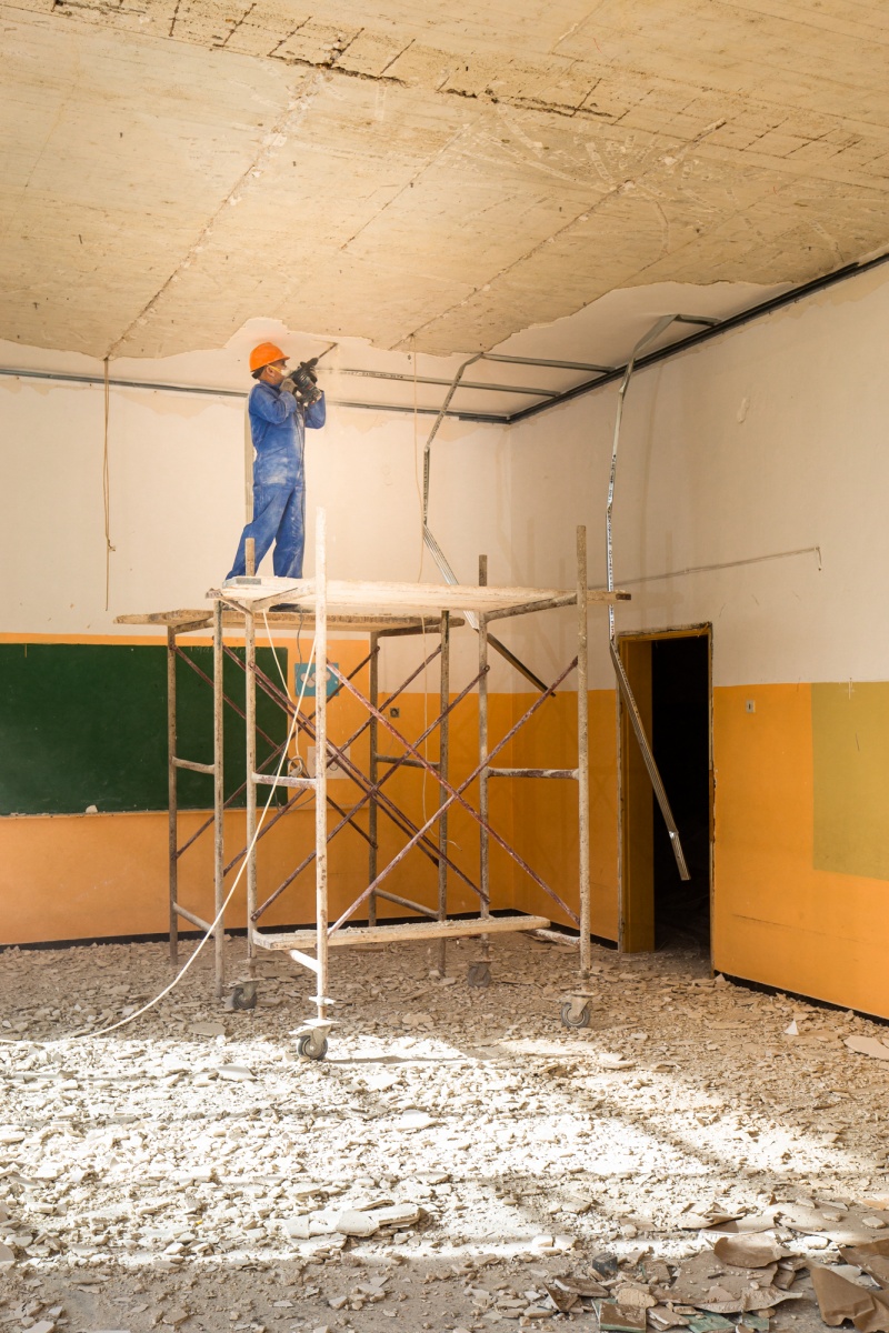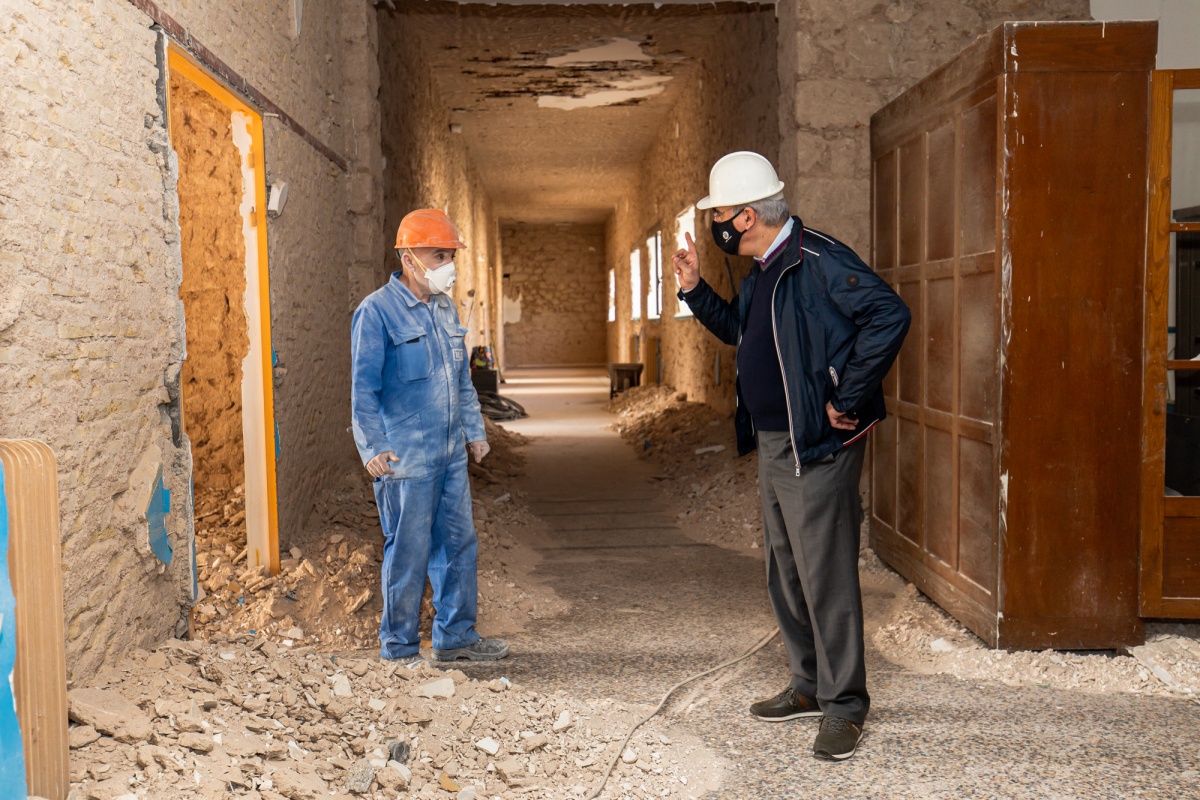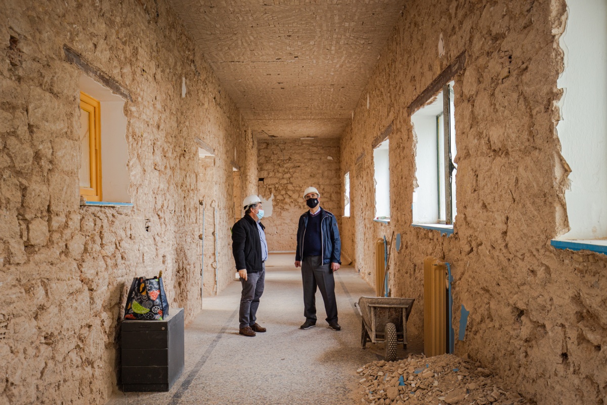 Ήδη κατά την πρώτη φάση εργασιών που αφορούν στο υφιστάμενο κτίριο, έχουν αποξηλωθεί τα επιχρίσματα και οι τοιχοποιίες του δευτέρου ορόφου. Εντύπωση προκαλεί, η αποκάλυψη της «πέτρας», που χτίστηκε το Σχολείο το 1930. Θα ακολουθήσουν αποξηλώσεις κουφωμάτων και λαμαρίνων της σκεπής, ώστε να γίνει εξ αρχής μόνωση. Στη συνέχεια: