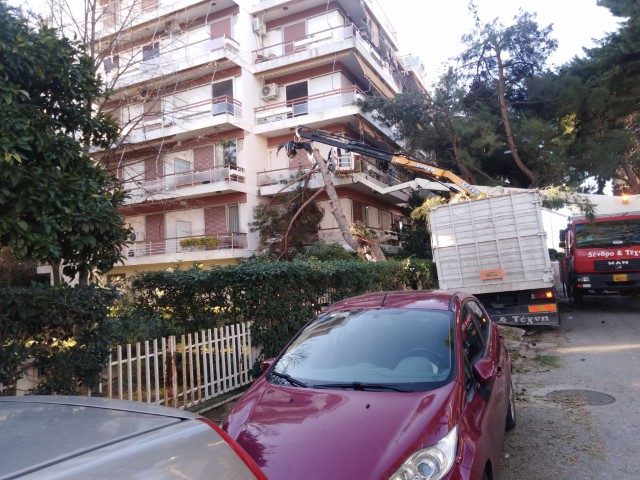 Οι εργαζόμενοι των Τμημάτων Πρασίνου και Ογκωδών του Δήμου μας φροντίζουν να απελευθερώνουν τους δρόμους (με προτεραιότητα στους κεντρικούς) και τα πεζοδρόμια από τα κλαδιά και τους κορμούς των δέντρων που είχαν σπάσει.