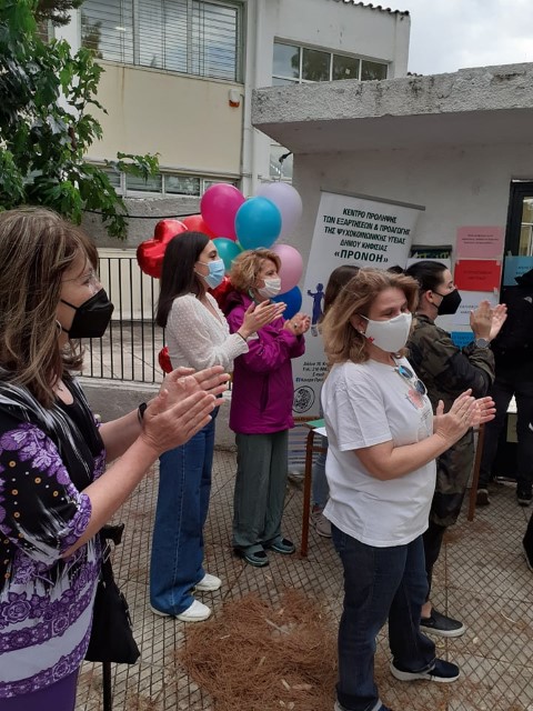 Η πρόεδρος της Κοινωνικής Μέριμνας του Δήμου Κηφισιάς και της Δημοτικής Επιτροπής Παιδείας, Κατερίνα Καραλή εμψυχώνει με χειροκρότημα τους μαθητές που φτάνουν στο ΑΝΑΞΑΓΟΡΕΙΟ ΛΥΚΕΙΟ ΝΕΑΣ ΕΡΥΘΡΑΙΑΣ.