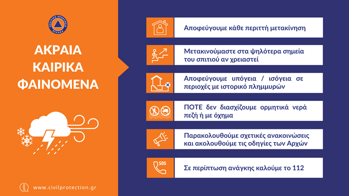 Για την εξέλιξη των έκτακτων καιρικών φαινομένων: www.emy.gr