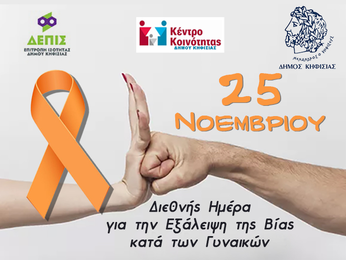 Δράσεις ενημέρωσης, πρόληψης και ευαισθητοποίησης οργανώνονται από τον Δήμο Κηφισιάς και την ΔΕΠΙΣ Κηφισιάς επ’ αφορμή της 25ης Νοεμβρίου, Διεθνούς Ημέρας για την Εξάλειψη της Βίας κατά των Γυναικών.