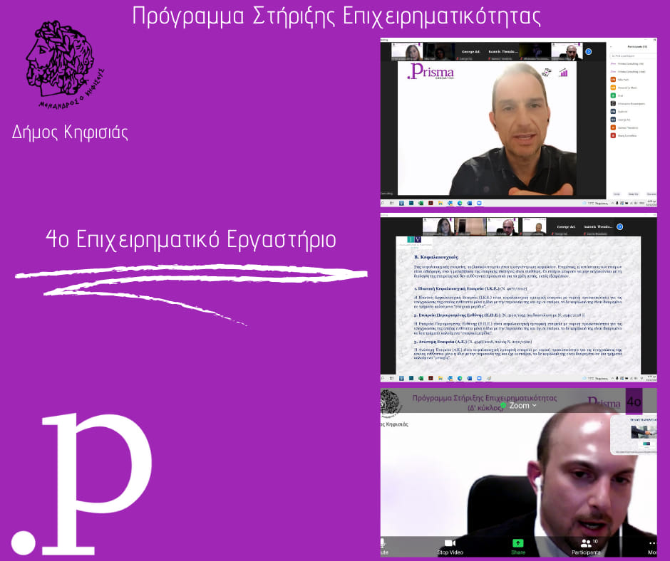 Συνεχίζουμε την υλοποίηση των workshops στο πλαίσιο του προγράμματος Στήριξης Επιχειρηματικότητας του Δήμος Κηφισιάς.